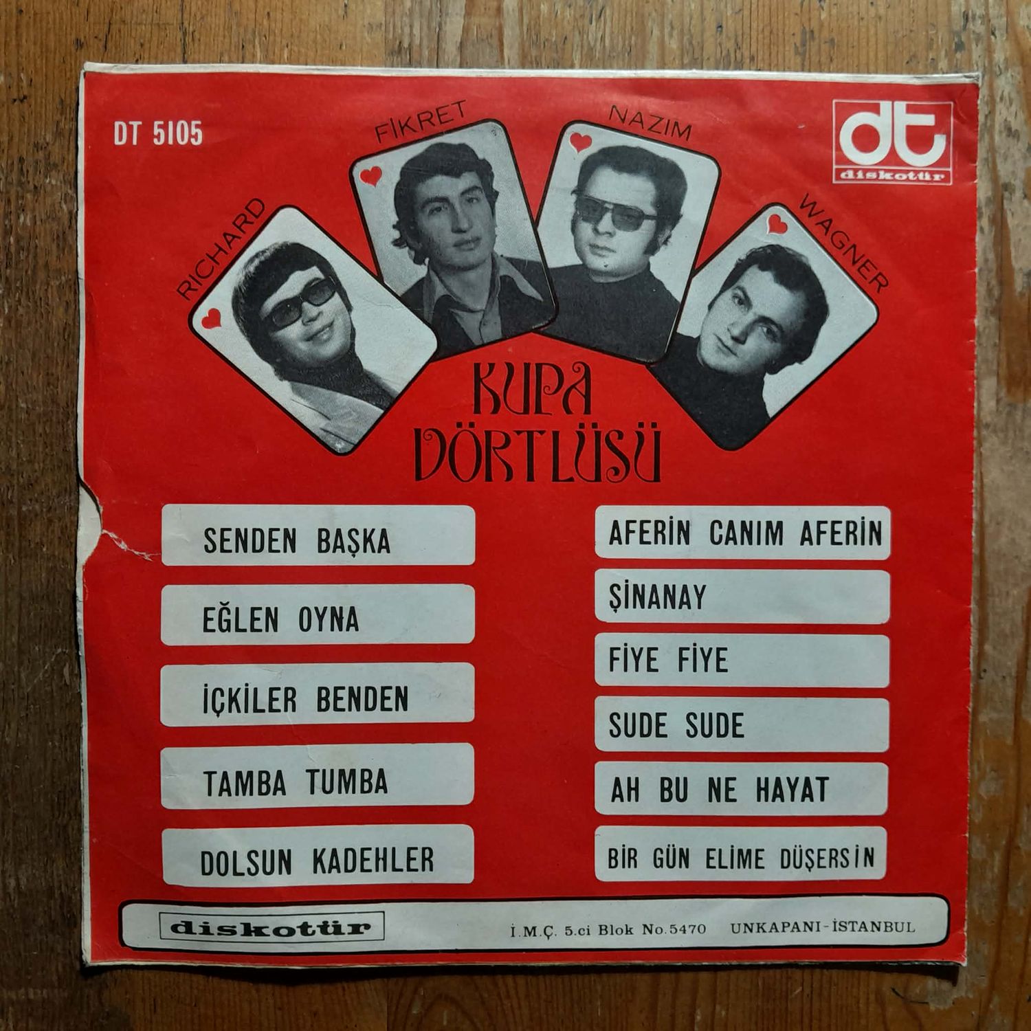 1 - Senden Başka 2 - Eğlen Oyna 3 - İçkiler Benden 4 - Tamba Tumba 5 - Dolsun Kadehler 1 - Aferin Canım 2 - Şinanay 3 - Fiye Fiye 4 - Sude sude 5 - Ah Bu Ne Hayat Kapak: 8... Plak: 8...