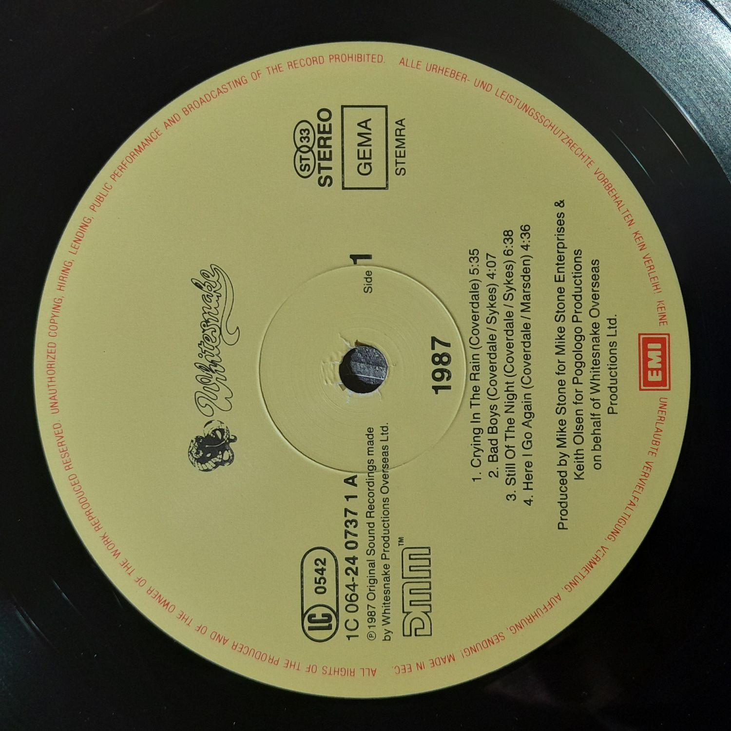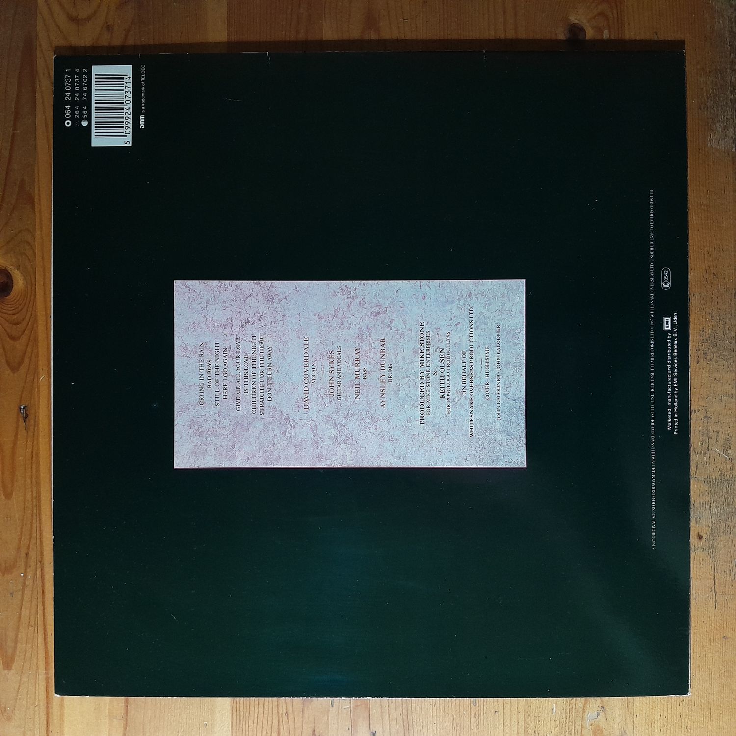 1987 Avrupa... Kapak: 9... Plak: 8,5... Orjinal İç Zarf: 9...